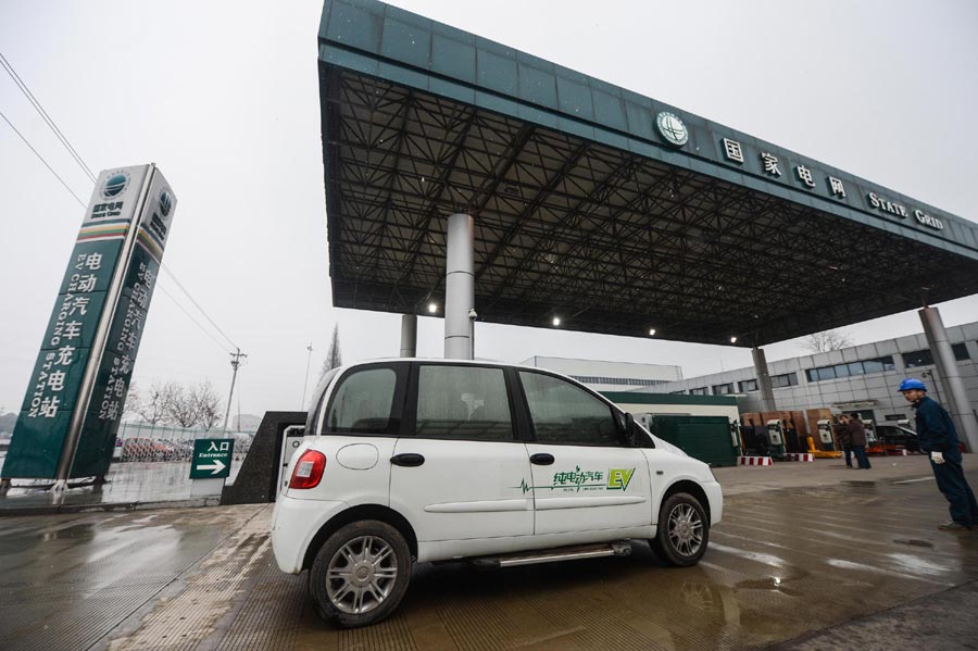 In an effort to promote electric vehicles, Beijing has announced plans to construct 1,000 public fast-charging electric car poles in 2014, covering downtown and suburb. Location for 100 points has already been confirmed. [Photo/Xinhua] |