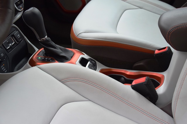 Anodized Orange trim dresses up Renegade center console. [Photo /wardsauto.com]