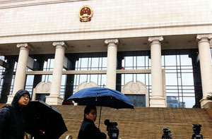 Journalists wait outside the Guangdong High Court, where the final ruling of the much debated iPad trademark dispute begins on Feb 29, 2012.