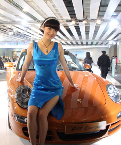 A model poses by a car on show at the 2006 Beijing International Automotive Exhibition in Beijing November 21, 2006. The auto show opened last Sunday and will be closed on November 27. [Chinadaily.com.cn]