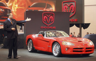 Eric Ridenour, COO of the Chrysler Group and DaimlerChrysler Board member, speaks beside a Dodge Viper during a news conference at the Shanghai Auto Show in Shanghai, China, April 20, 2007. [Reuters]