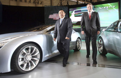 SAIC Chairman Hu Maoyuan (L) and General Motors