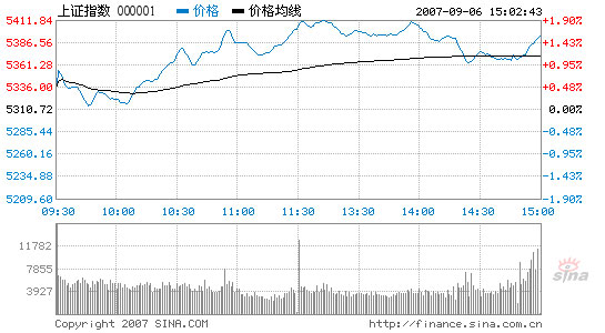 Opening higher at 5,336.67, the index slid a little to 5,314.34 at first, but then grew to break the 5,400-point mark a few times, with the highest at 5412.32. In the latter half of the afternoon session, however, a few big selling bids dragged the index back to lower levels. Finally it closed 82.94 points or 1.56 percent higher than yesterday's closing.