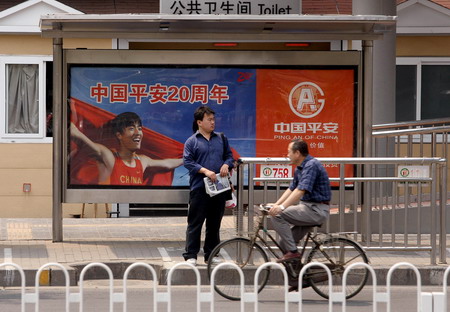 A Ping An Insurance billboard at a bus stop in Beijing. [Agencies]