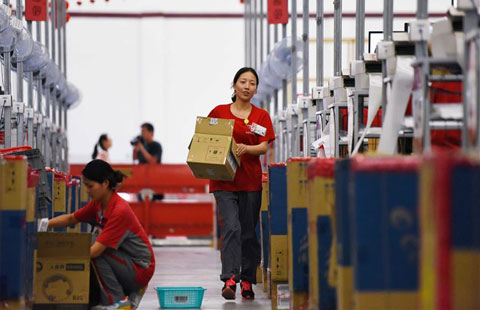 JD working staff prepare for '618' online shopping festival