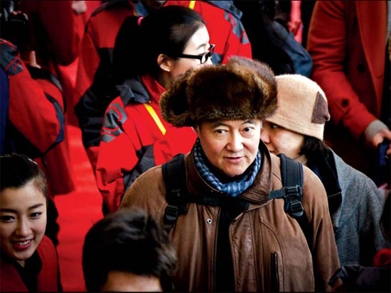 An elder man wearing a fur hat attends an alumni reunion activity in Beijing Film Academy on Dec 22.[Photo/China Daily]