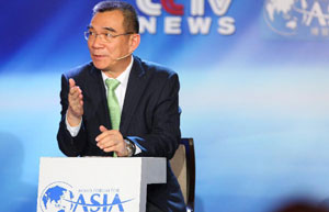 Lu Binbin (L), founder of B-Doing Communication Agency, presides over the forum "E-Commerce vs Traditional Commerce: Zero-Sum or Win-Win?" during the Boao Forum for Asia (BFA) Annual Conference 2014 in Boao, south China's Hainan Province, April 10, 2014. [Photo/Xinhua] |
