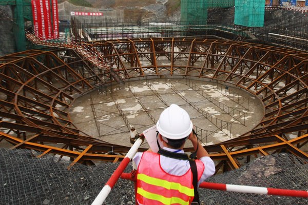A construction site for a nuclear plant in Ningbo, Zhejiang province. Nuclearrelated businesses in Haiyan county, also located in Zhejiang province, had an output value of 17 billion yuan ($2.74 billion) in 2013. Provided to China Daily |