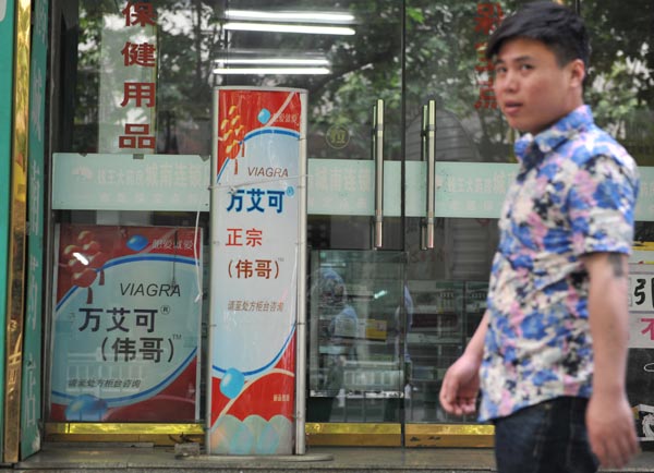 ![]() A drugstore selling Viagra in Hangzhou, Zhejiang province. Pfizer is about to lose its Chinese patent for sildenafil, sold as Viagra, and Chinese drug companies will be given the opportunity to capture the erectile dysfunction medication market. Hu Jianhuan / For China Daily |