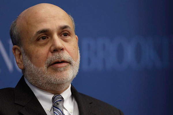 Former US Federal Reserve Board Chairman Ben Bernanke participates in a discussion at the Brookings Institution in Washington in this January 16, 2014 file photo.[Photo/Agencies] |
