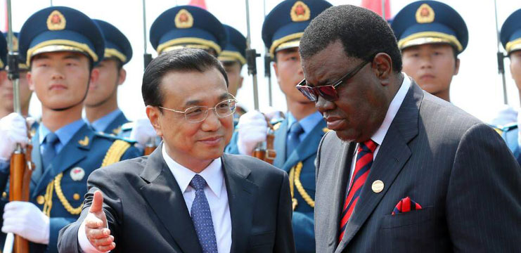 Chinese Premier Li Keqiang meets with Namibia's Prime Minister Hage Geingob, in Sanya, Hainan province, April 9, 2014.