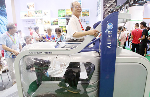 A visitor tries out a machine for fitting glasses at the 2017 China International Internet of Things Technology Expo in Beijing. LIU XIANGUO / FOR CHINA DAILY
