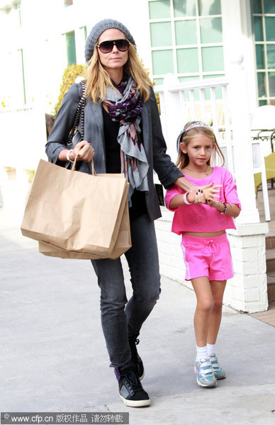 Topmodel HEIDI KLUM seen shopping with her girls LOU and LENI in Brentwood on Nov 3, 2011.[Photo/CFP]