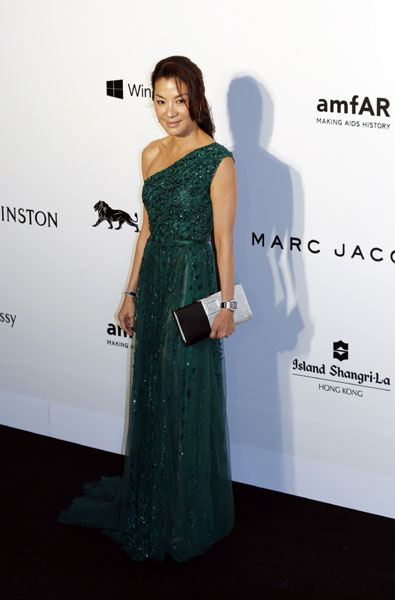 Malaysian actress Michelle Yeoh poses upon arrival at the Foundation for AIDS Research (amfAR) inaugural fund raising gala in Hong Kong, March 14, 2015. [Photo/Agencies] |