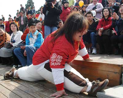 legs apart in Xuanwuhu park in Nanjing, East China's Jiangsu Province on March