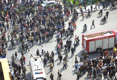 Thousands of passersby gather at the scene afater