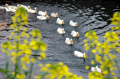 Ducks swim in a river of the Benzhai Village in Anshun, southwest China's