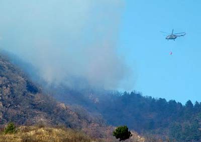 out a mountain fire in Huairou District, Beijing, March 25, 2006. A fire broke
