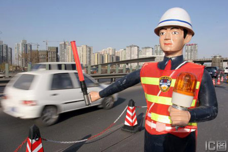 Electronic traffic police post in Beijing (ic) Updated: 2006-03-28 16:29  A lifelike electronic policeman wields a baton directing traffic