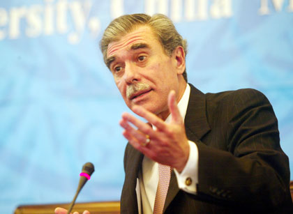 China. US Commerce Secretary Carlos Gutierrez gestures during a speech at