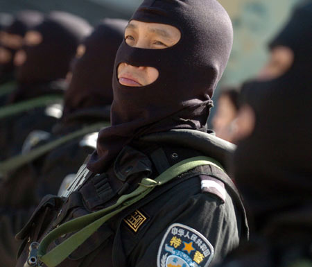 Chinese armed police officers attend a training exercise