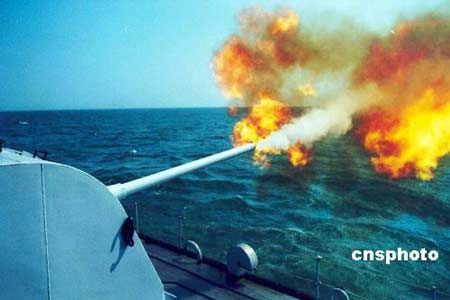 Chinese soldiers of the East China Sea Fleet take part in an ammunition exercise in an unidentified sea area in this picture taken sometime in March, 2006. [CNSPHOTO]