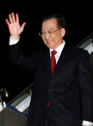 Chinese Premier Wen Jiabao waves on his