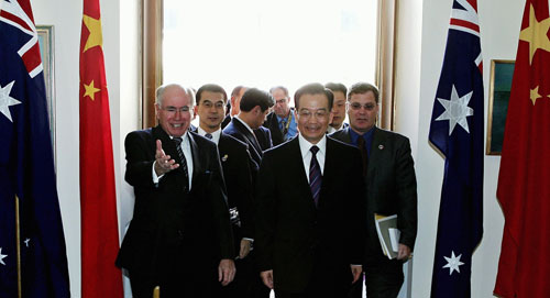 at Parliament House in Canberra April 3, 2006. Australia and China are set to