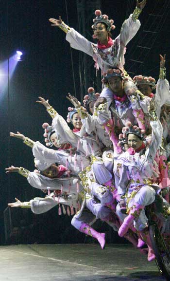 Great Chinese State Circus performs in Spain (Reuters) Updated: 2006-04-21 15:54  Acrobats from the Great Chinese State Circus perform during