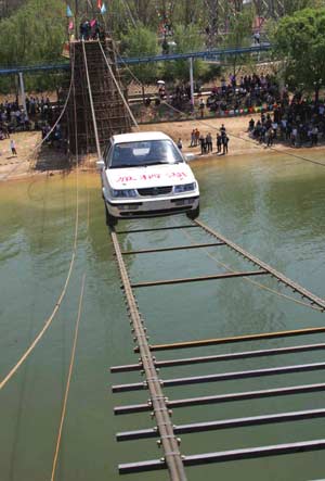 Man drives car through tightrope (newsphoto) Updated: 2006-05-03 08:48