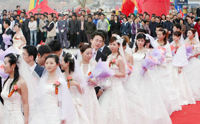 wedding ceremony at a beach in Qingdao, Shandong Province May 4, 2006. Sixty-six