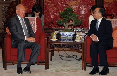 Wen with Singapore's Minister Mentor (Newsphoto) Updated: 2006-05-12 23:03