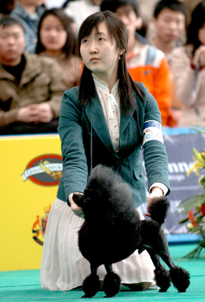 A young woman waits for the results of a pet competition on May 16, 2006. As the standard of living rises, the pet business is gradually expanding across the nation. [Xinhua]