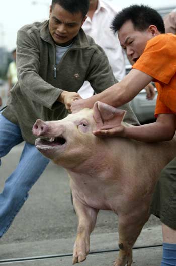 Dongguan, South China's Guangdong Province on May 16. 44 pigs escaped from an