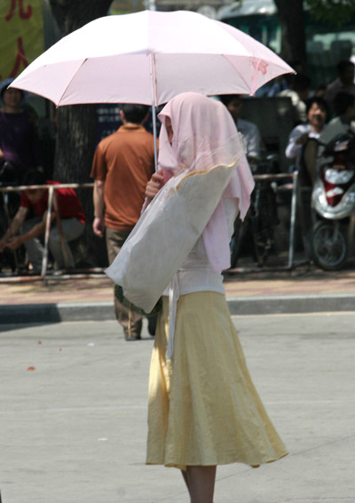 the scorching sun in Xiamen, east China's Fujian province May 18. The province
