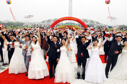 northeast China's Liaoning Province May 21, 2006. One hundred couples celebrated