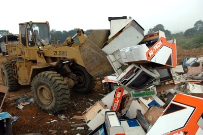 A scraper is seen destroying confiscated