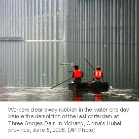 province, June 5, 2006. Workers are to blow up the massive temporary cofferdam