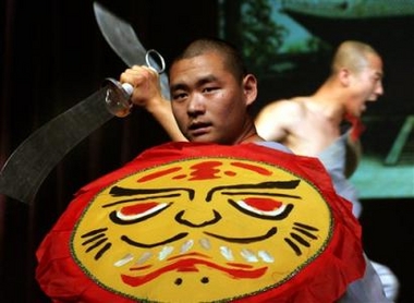 Shaolin Temple perform in the Bulgaria (AP) Updated: 2006-06-08 06:51  Shaolin's monks from China's Shaolin Temple perform with sabers in