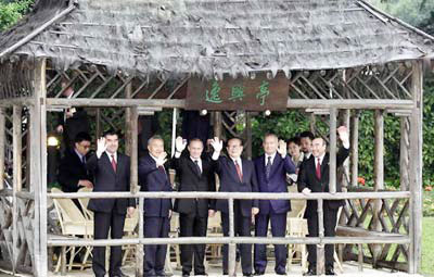 The heads of China, Russia, Kazakhstan, Kyrgyzstan, Tajikistan and Uzbekistan meet in Shanghai, June 14, 2001. [Xinhua]