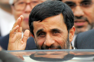 Iran's President Mahmoud Ahmadinejad (C) arrives at the Pudong Airport in Shanghai to attend the Shanghai Cooperation Organization (SCO) summit, June 14, 2006. [Reuters]