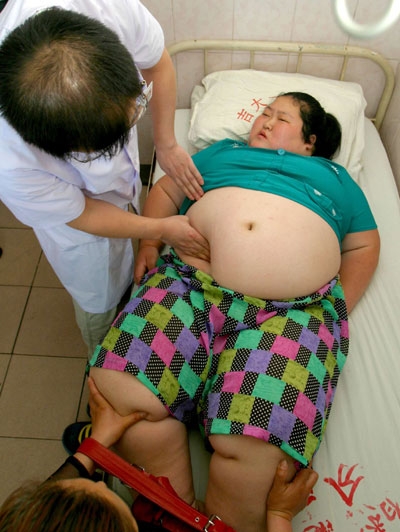 12-year old girl from Dunhun city, Jilin. The girl is 151 kg (333 pounds) and