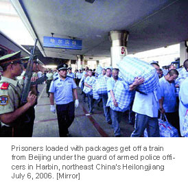 to Harbin in Beijing July 6, 2006. Over 200 inmates from Heilongjiang province