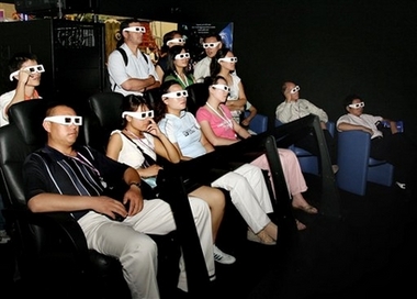 Visitors watch the new 3D movie theater at an international