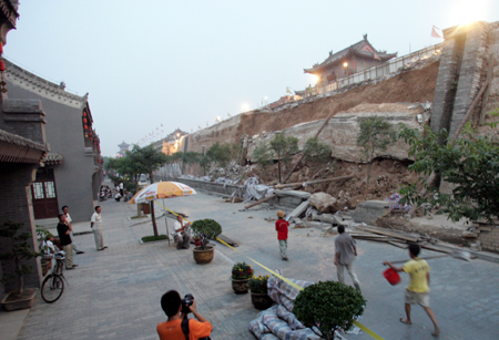 Ancient wall collapses in Xi'an (newsphoto) Updated: 2006-07-26 17:06
