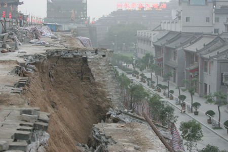 Ancient wall collapses in Xi'an (newsphoto) Updated: 2006-07-26 17:06