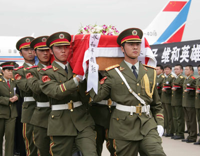 Chinese UN observer's remains back home (Xinhua) Updated: 2006-08-02 14:05