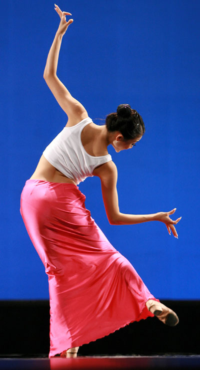 A contestant performs during the semi-final of a folk dance competition in Beijing Wednesday August 9, 2006. [Xinhua]