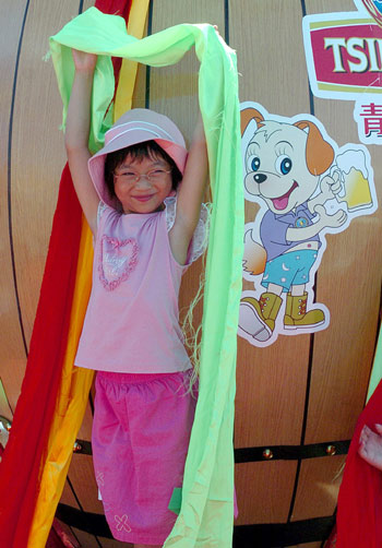 Beer Festival underway in Qingdao (Xinhua) Updated: 2006-08-13 15:44  A girl holding up high colourful ribbons poses before a giant beer