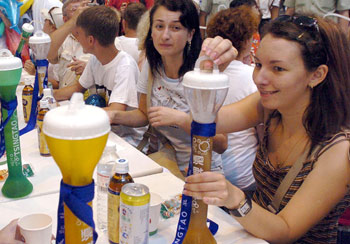 Beer Festival underway in Qingdao (Xinhua) Updated: 2006-08-13 15:44  Foreigners enjoy themselves drinking beer at the opening ceremony